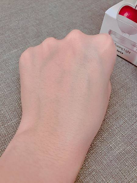 *這是右半邊有擦超薄一層的Dr. Jart+ V7 Toning Light Cream而左半邊什麼都沒有擦的手*